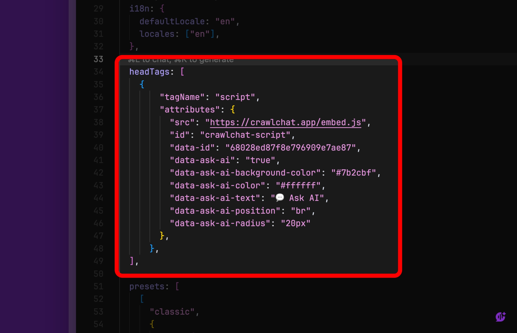 https://yoursite.com/docs).2.x).Now that CrawlChat knows your content, it’s time to let users interact with it on your website.