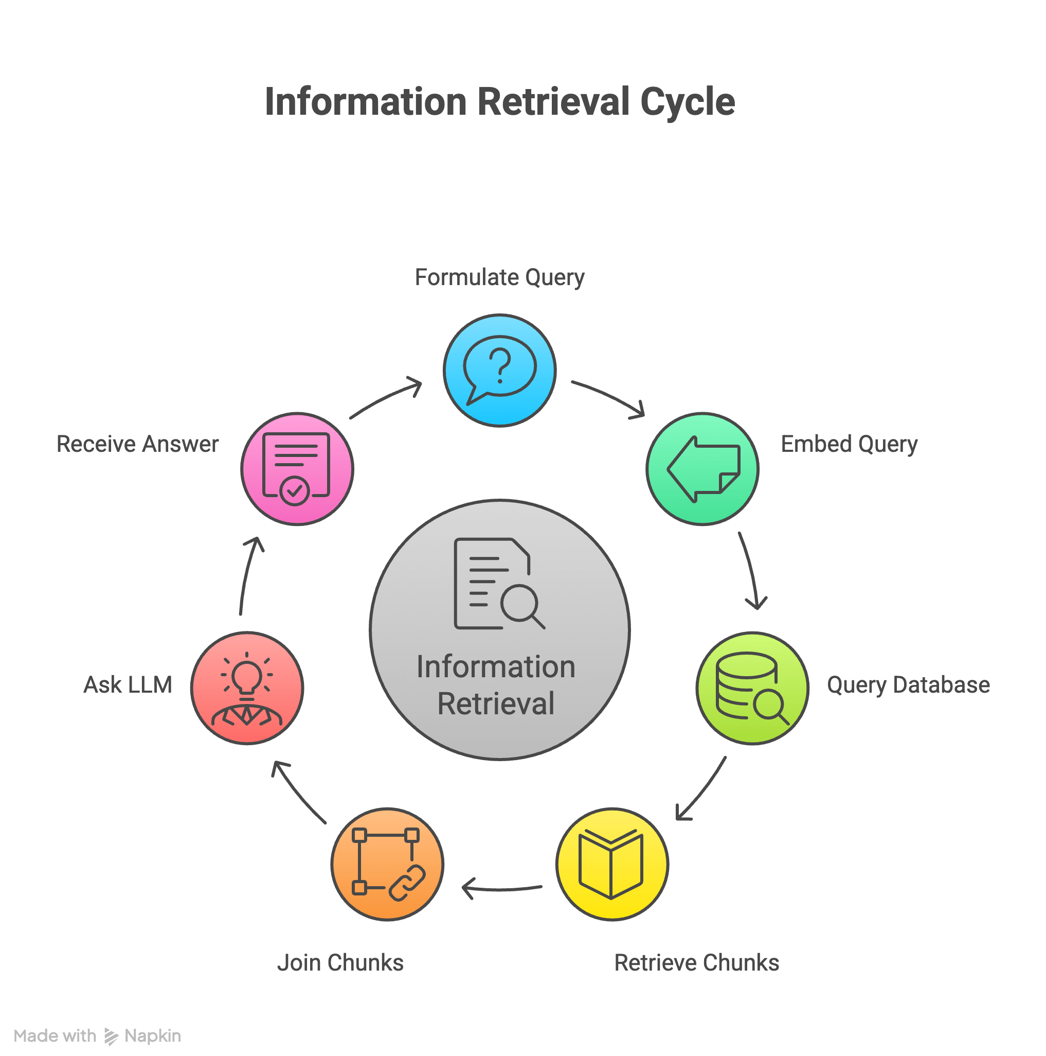 There we just finished our first phase. We created chunks, turned them into vectors, stored them in a Vector database. Now we are all good to retrieve the relevant information for a given query.