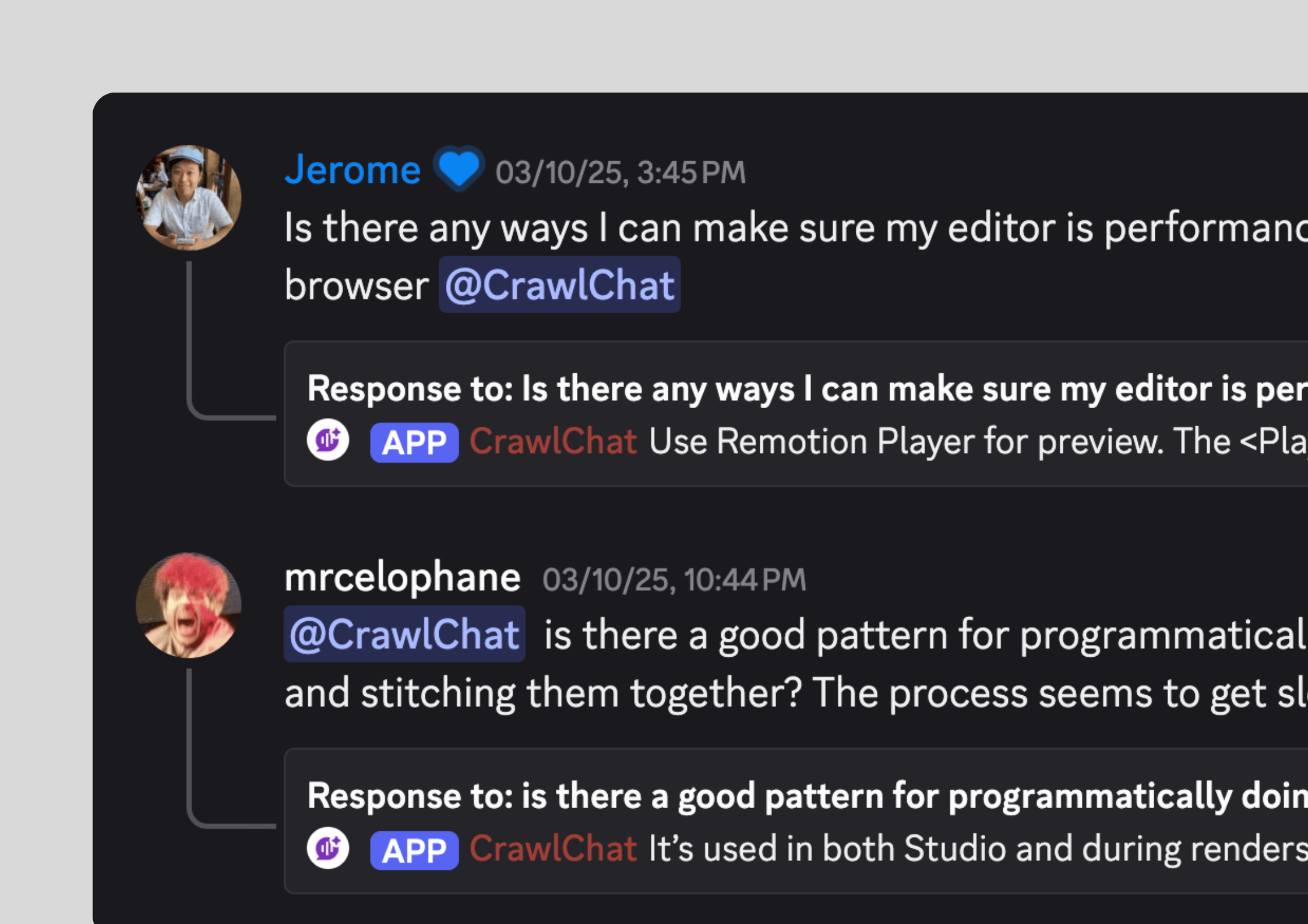 Most queries from your community are already answered in your documentation. With CrawlChat, enable your documentation to answer queries instantly on the platforms where your community engages.